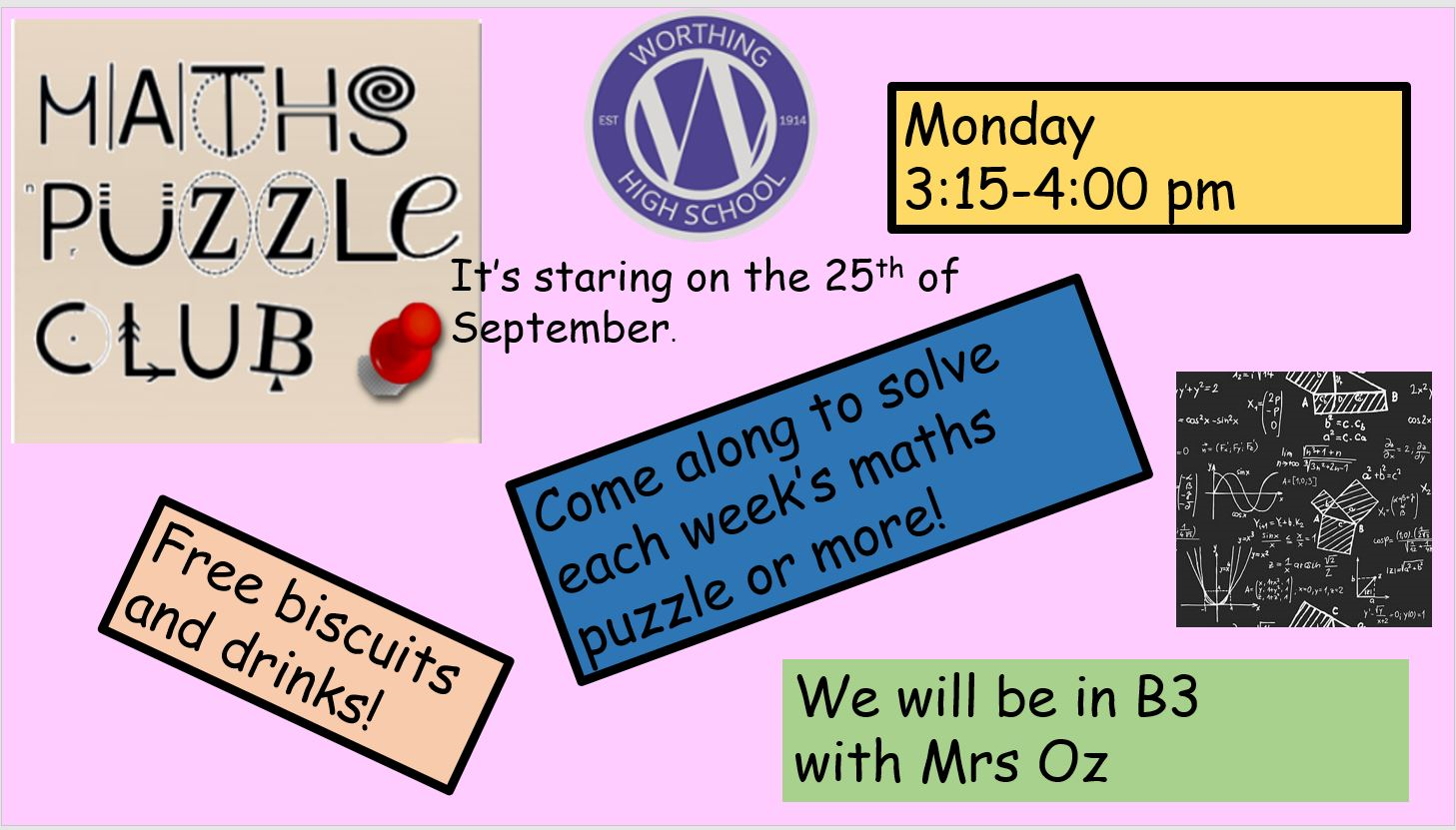 We had an enormous amount entries for this competition which will be done every half term. The students are encouraged to solve problem solving questions. This competition is only open to WHS students.