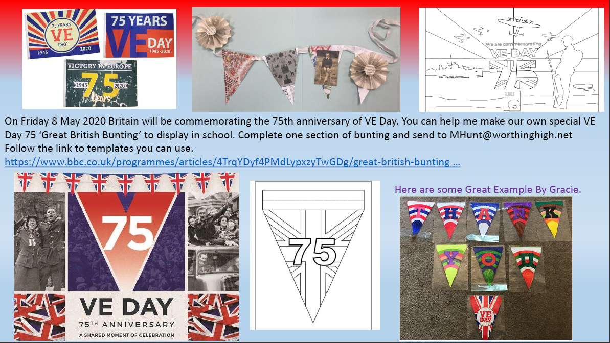 The 8th May will celebrate the 7th anniversary of VE Day. Why not make your own model of the iconic Spitfire. More information on the @worthinghighDT twitter pages and on Showmyhomework