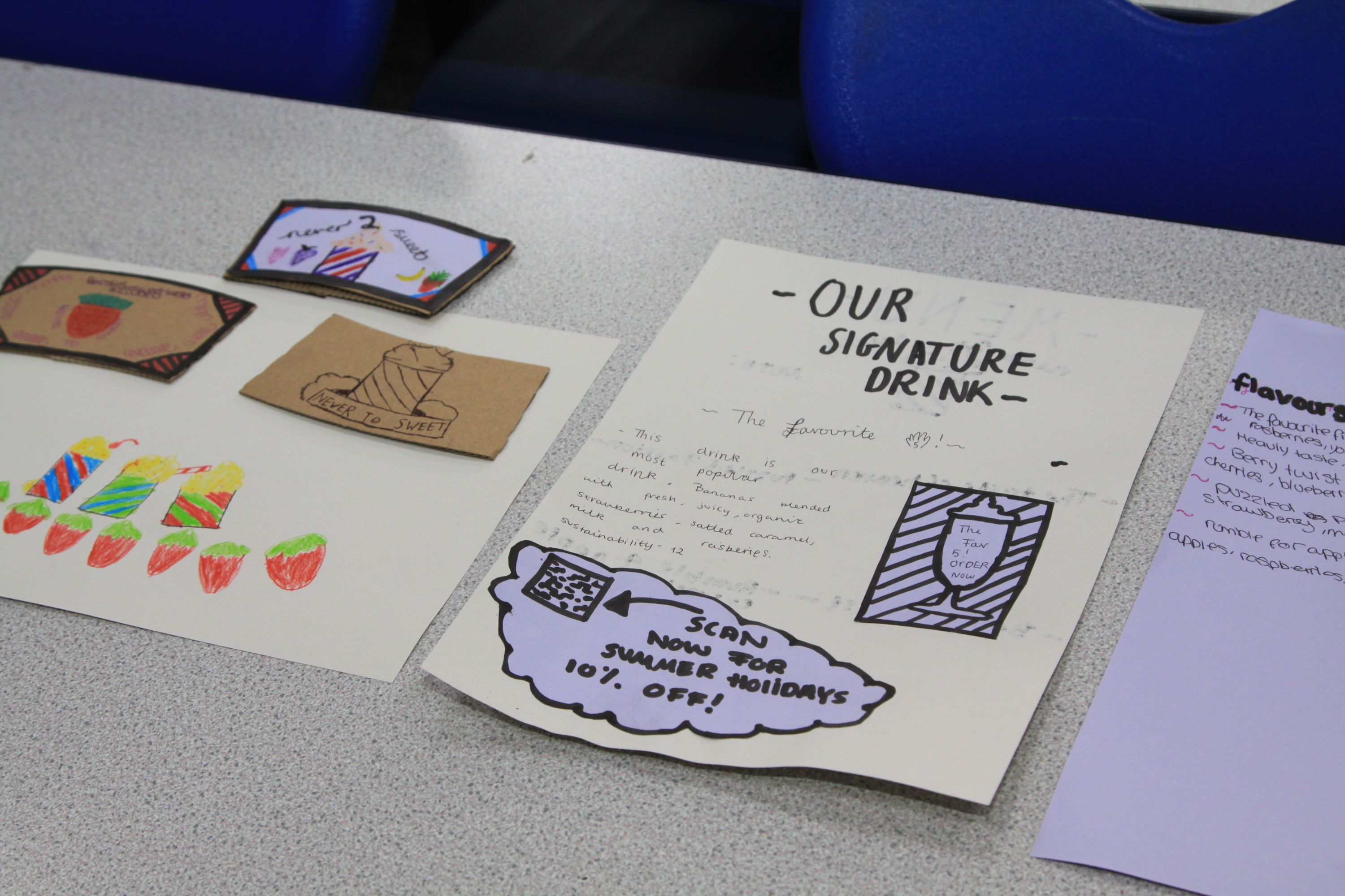 Some of the very inventive and clever Milkshake Bar names produced by Year 8 were –
